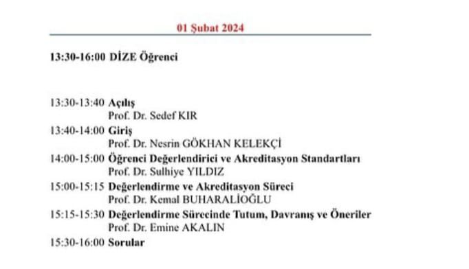 ECZAKDER Değerlendirme ve İzleme Ziyareti Ekiplerinde yer alacak öğretim üyeleri, toplum ve kamu eczacıları ve eczacılık fakültesi öğrencileri için Danışmanlık ve Eğitim Komisyonu tarafından 1 Şubat 2024 tarihinde yılın ilk değerlendirici eğitimi düzenlendi. Çevirm içi düzenlenen ve 30 yakın katılımcıyla gerçekleştirilen eğitimin açılış konuşması ECZAKDER Başkanı Prof. Dr. M. Seçkin Özden tarafından yapıldı. Eğitimciler Prof. Dr. Emine Akalın, Prof. Dr. Nesrin Gökhan Kelekçi, Prof. Dr. Müzeyyen Demirel öğlene kadar devam eden genel eğitimde akreditasyon standartlarından, değerlendirme süreçlerinden, öğrenci değerlendirici sisteminden ve ziyaret süresince dikkat edilmesi gereken tutum ve davranışlardan söz ettiler. Öğleden sonra yapılan öğrencilere yönelik eğitimin açılış konuşması ECZAK Başkanı Prof. Dr. Sedef Kır tarafından gerçekleştiriidi. Eğitimciler Prof. Dr. Nesrin Gökhan Kelekçi, Prof. Dr. Sulhiye Yıldız, Prof. Dr. Kemal Buharalıoğlu ve Prof. Dr. Emine Akalın öğrencileri ilgilendiren akreditasyon standartları ağırlıklı olmak üzere benzer konu başlıklarına yer verdiler. Eğitimin her iki bölümünün sonunda yapılan soru-cevap oturumu ile tüm üyelerin saha ziyaretine çıkmadan önce kafalarındaki sorulara cevap bulmaları sağlandı.