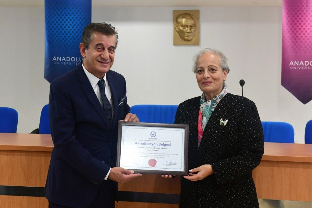 ECZAKDER tarafından 2022-2028 yılları arasında yeniden akredite edilen Anadolu Üniversitesi Eczacılık Fakültesine akreditasyon belgesi 12 Ekim 2022 tarihinde yapılan törenle verildi. Anadolu Üniversitesi Eczacılık Fakültesi Prof. Dr. İhsan Sarıkardeşoğlu Salonu’nda gerçekleştirilen törende akreditasyon belgesi ECZAK Başkanı Prof. Dr. Sedef Kır tarafından Dekan Prof. Dr. Bülent Ergun'a takdim edildi. Törende ECZAK Başkanı Prof. Dr. Sedef Kır akreditasyon sürecinin önemini ve bu alanda yürütülen faaliyetleri özetleyen bir sunum gerçekleştirdi. Törene Anadolu Üniversitesi Rektörü Prof. Dr. Fuat Erdal, Rektör Yardımcıları Prof. Dr. Betül Demirci ve Prof. Dr. Ali Resül Usul, Eskişehir Eczacı Odası Başkanı Ecz. Metin Kamış, ECZAKDER Yönetim Kurulu Üyesi Prof. Dr. Füsun Acartürk, ECZAK Kurulu Üyesi Prof. Dr. Neşe Kırımer, akademisyenler ve öğrenciler katıldı.