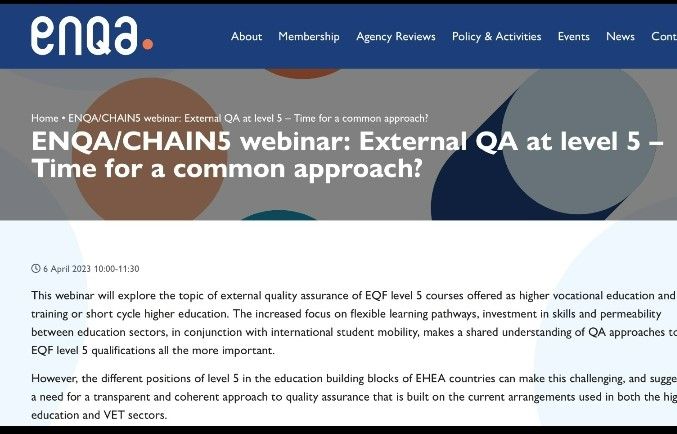- EQF Level 5 (Avrupa Yükseköğretim Yeterlilikler Çerçevesi 5. düzey) çalışmaları konusunda CHAIN5 adlı kuruluştan Hans Daale, eğitimde 5. düzey çalışmaları hakkında bilgiler verdi.