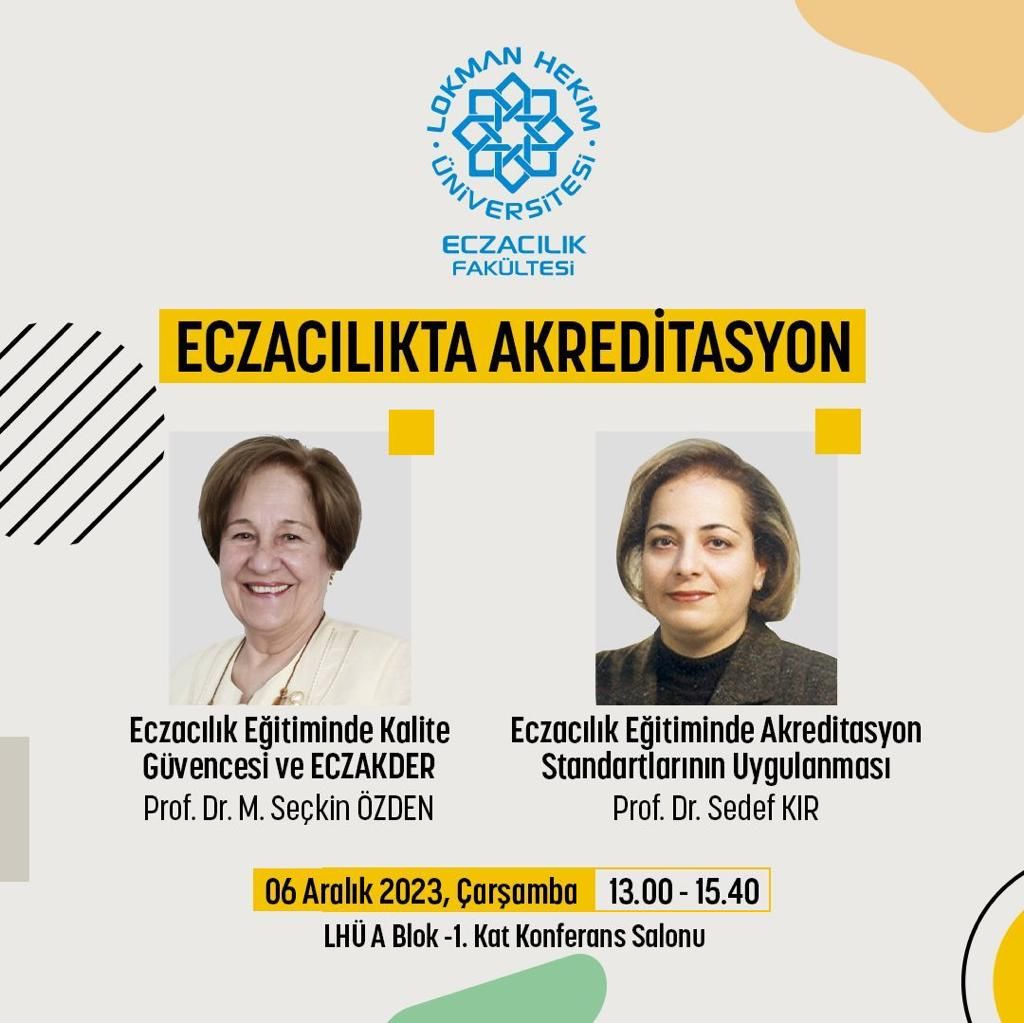 6 Aralık 2023 tarihinde Lokman Hekim Üniversitesi Eczacılık Fakültesi tarafından "Eczacılıkta Akreditasyon" konulu bir konferans gerçekleştirildi. Bu konferans kapsamında ECZAKDER Başkanı Prof. Dr. M. Seçkin Özden "Eczacılık Eğitiminde Kalite Güvencesi ve ECZAKDER"; ECZAK Başkanı Prof. Dr. Sedef Kır da "Eczacılık Eğitiminde Akreditasyon Standartlarının Uygulanması" başlıklı birer konuşma yaptılar. Sunulara aşağıdaki linklerden erişebilirsiniz.