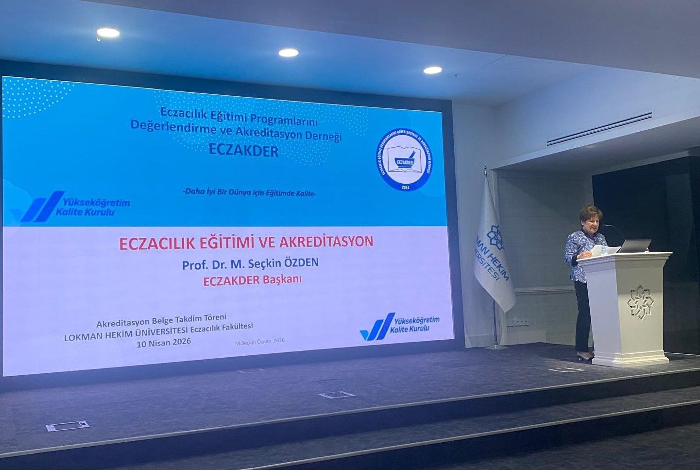 30 Ocak 2026 tarihinde 6 yıllık tam akreditasyon almaya hak kazanan Lokman Hekim Üniversitesi Eczacılık Fakültesi'nin akreditasyon belgesi ECZAKDER Başkanı Prof. Dr. M. Seçkin Özden tarafından 10 Nisan 2026 günü düzenlenen törenle Üniversite Rektörü Prof. Dr. Fatih Gültekin ve Eczacılık Fakültesi Dekanı Prof. Dr. İlkay Erdoğan Orhan'a takdim edildi. Törene ECZAKDER Yönetim Kurulu üyeleri Prof. Dr. Benay Can Eke, Prof. Dr. Sema Burgaz, Prof. Dr. Füsun Acartürk ve Ecz. Şekip Kırbeci, Anaka Eczacı Odası Genel Sekreteri Ecz. Ahmet Çakan, akademisyenler ve öğrenciler de katıldı.