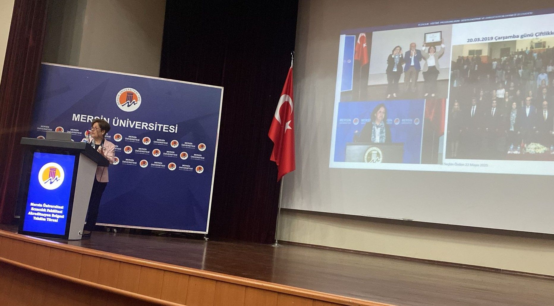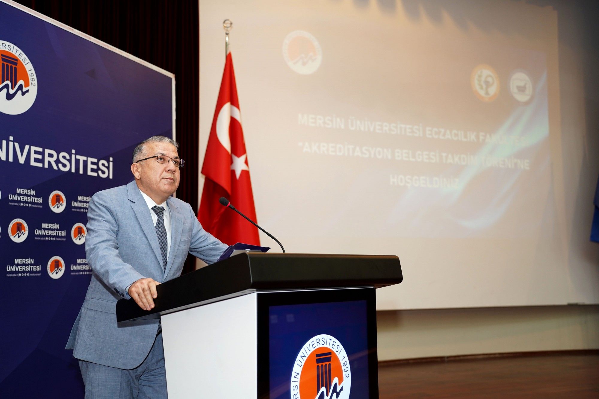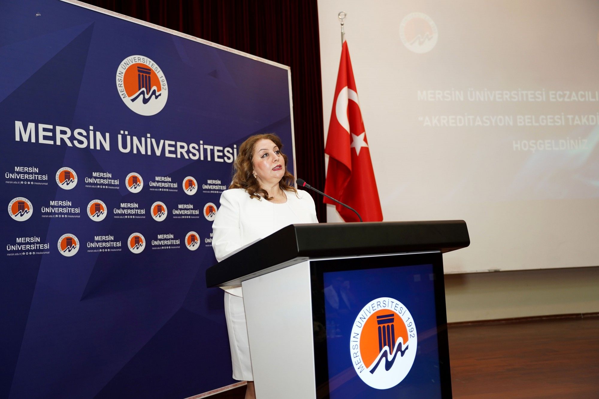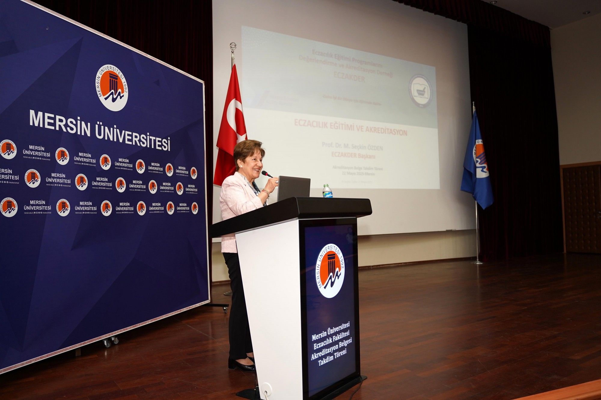 ECZAKDER tarafından 25.01.2025 tarihinden geçerli olmak üzere 6 yıllık tam akreditasyon verilen Mersin Üniversitesi Eczacılık Fakültesi’ne akreditasyon belgesi 22 Mayıs 2025 tarihinde Prof. Dr. Uğur Oral Kültür Merkezi’nde düzenlenen törenle takdim edildi. Eczacılık Fakültesi Müzik Grubunun dinletisi ve açılış konuşmalarının ardından ECZAKDER Başkanı Prof. Dr. M. Seçkin Özden akreditasyon sürecini, akreditasyonun eczacılık fakültelerine kazandırdıklarını, eczacılık eğitiminde akreditasyonun önemini ve ECZAKDER'in yapısını anlatan bir sunum gerçekleştirdi. Akreditasyon belgesi ECZAKDER Başkanı Prof. Dr. M. Seçkin Özden ve Genel Sekreter Prof. Dr. Benay Can Eke tarafından fakültenin dekanı Prof. Dr. Necmiye Canacankatan'a sunuldu. Törene Mersin Üniversitesi Rektörü Prof. Dr. Erol Yaşar, Türk Eczacıları Birliği Merkez Heyeti Üyesi Uzm. Ecz. Özgün Sağır, 25. Bölge Mersin Eczacı Odası Başkanı Ecz. Aliye Akgül Aydın, Güney Ecza Kooperatifi Yönetim Kurulu Başkanı Ecz. Tarkan Bir, dekanlar, enstitü ve yüksekokul müdürleri, daire başkanları, akademik ve idari personel, fakültenin önemli paydaşı olan eczacılar ve çok sayıda öğrenci katıldı.