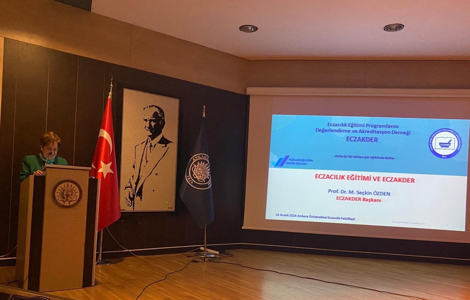 Ankara Üniversitesi Eczacılık Fakültesinin kuruluşunun 64. yıldönümü etkinliğine davet edilen ECZAKDER Başkanı Prof. Dr. M. Seçkin Özden 16 Aralık 2024 tarihinde yapılan törende ’Açış Dersi’ gerçekleştirdi. Akreditasyonun öneminden ve ECZAKDER'in faaliyetlerinden bahseden Özden, mezunu ve uzun yıllar mensubu olduğu fakültesinde öğrenciler, akademisyenler ve mezunlarla bir arada olmanın mutluluğunu yaşadığını belirtti. Sn. Özden'in açış dersi sunumuna aşağıdaki linkten ulaşabilirsiniz.