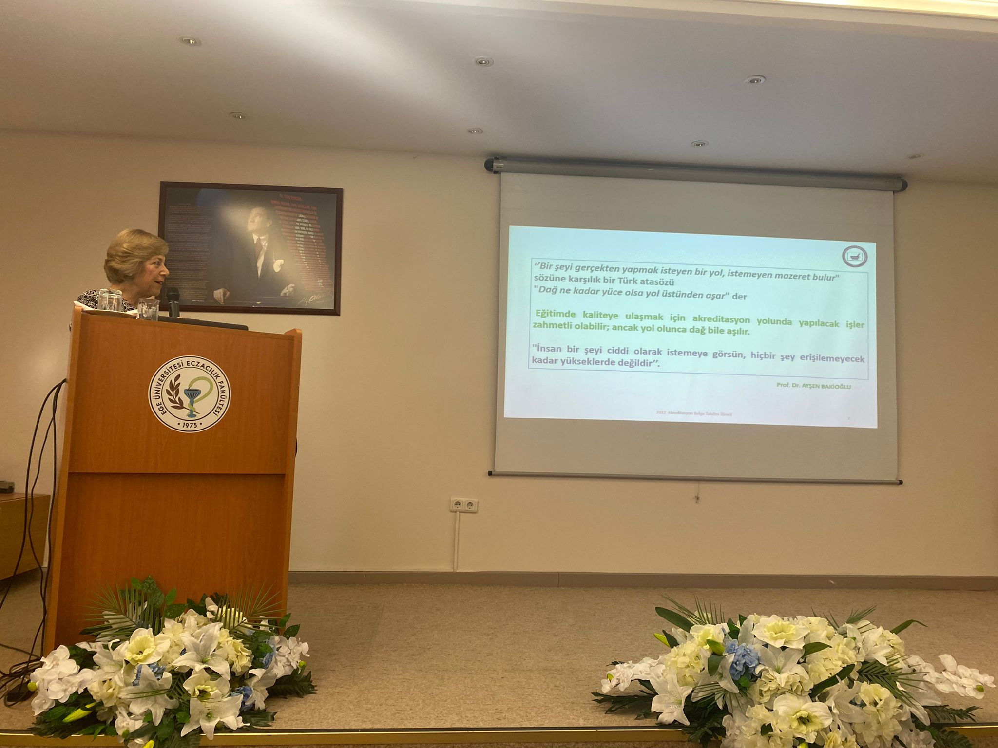 ECZAKDER tarafından 2022-2028 yılları arasında yeniden akredite edilen Ege Üniversitesi Eczacılık Fakültesine akreditasyon belgesi 20 Ekim 2022 tarihinde yapılan törenle verildi. Ege Üniversitesi Eczacılık Fakültesi Konferans Salonunda gerçekleştirilen törende akreditasyon belgesi ECZAKDER Yönetim Kurulu Üyeleri Prof. Dr. Füsun Acartürk ve Ecz. Şekip Kırbeci ile ECZAK Başkan Yardımcısı Prof. Dr. Aysun Pabuçcuoğlu tarafından Dekan Prof. Dr. Hande Gürer Orhan ve Rektör Prof. Dr. Necdet Budak'a takdim edildi. Törende ECZAKDER Yönetim Kurulu Üyesi Prof. Dr. Füsun Acartürk akreditasyon sürecinin önemini ve bu alanda yürütülen faaliyetleri özetleyen bir sunum gerçekleştirdi. Tören akademisyenler ve öğrencilerin de katılımıyla pasta kesiminin ardından sona erdi.
