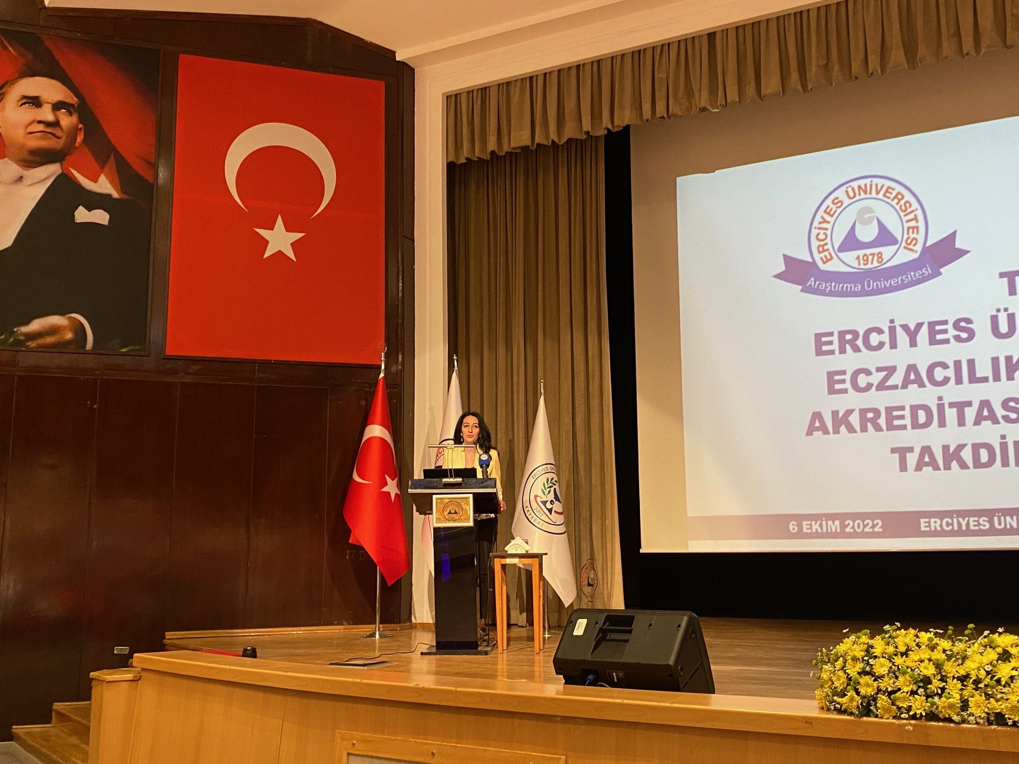ECZAKDER tarafından 2022-2028 yılları arasında yeniden akredite edilen Erciyes Üniversitesi Eczacılık Fakültesine akreditasyon belgesi 6 Ekim 2022 tarihinde yapılan törenle verildi. Erciyes Üniversitesi Sabancı Kültür Sitesinde gerçekleştirilen törende akreditasyon belgesi ECZAKDER Yönetim Kurulu Üyeleri Prof. Dr. Mesut Sancar ve Şule Apikoğlu tarafından Dekan Prof. Dr. M. Betül Yener Aycan, Rektör Yardımcısı Prof. Dr. Oktay Özkan ve önceki dekanlardan Prof. Dr. İbrahim Narin'e birlikte takdim edildi. Törende ECZAKDER Yönetim Kurulu Üyesi Prof. Dr. Mesut Sancar akreditasyon sürecinin önemini ve bu alanda yürütülen faaliyetleri özetleyen bir sunum gerçekleştirdi. Törene Kayseri Eczacı Odası Başkanı Ecz. Uğur Nuri Akın, öğretim üyeleri ve öğrenciler de katıldı. ECZAKDER Yöneticilerine günün anısına birer hediye ve Kayseri Hatıra Ormanında adlarına dikilen fidanların sertifikası takdim edildi. Tören pasta kesiminin ardından sona erdi.